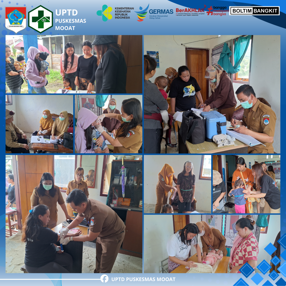 Dalam melayani masyarakat, petugas kesehatan dari UPTD Puskesmas Mooat dibantu kader Posyandu Desa Bongkudai Selatan. Antusias masyatakat datang ke tempat pelayanan kesehatan sangat tinggi.
